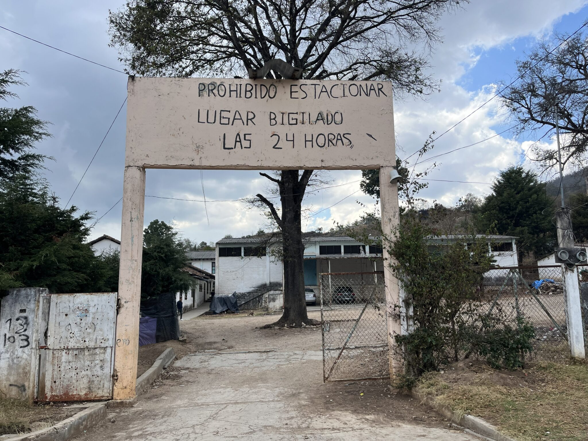 Entrada del campamento para desplazados del Ejido Puebla. Foto: Ximena Avendaño
