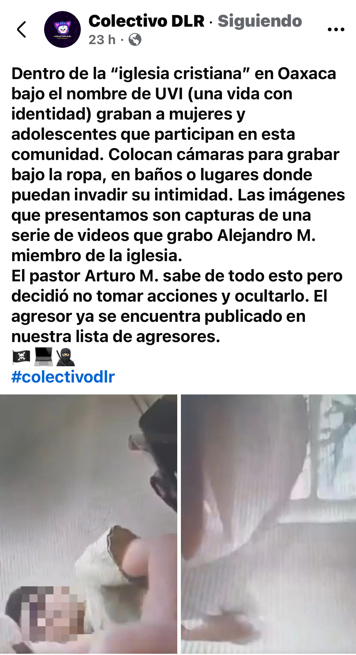 Oaxaca, Oax.- De nueva cuenta, hacktivistas de Oaxaca, del colectivo DLR denunciaron que en una iglesia cristiana llamada “Una Vida con Identidad” (UVI), colocaron cámaras para grabar a las mujeres en su intimidad.