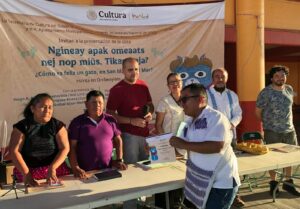 presentó su libro: Ngineay apak omeaats nej nop miüs, Tikambaja? /¿Cómo es feliz un gato, en San Mateo del Mar?.