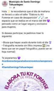 Causa indignación invitación para elaborar “kit forense en caso de desaparición” por parte del municipio de Tehuantepec, Oaxaca