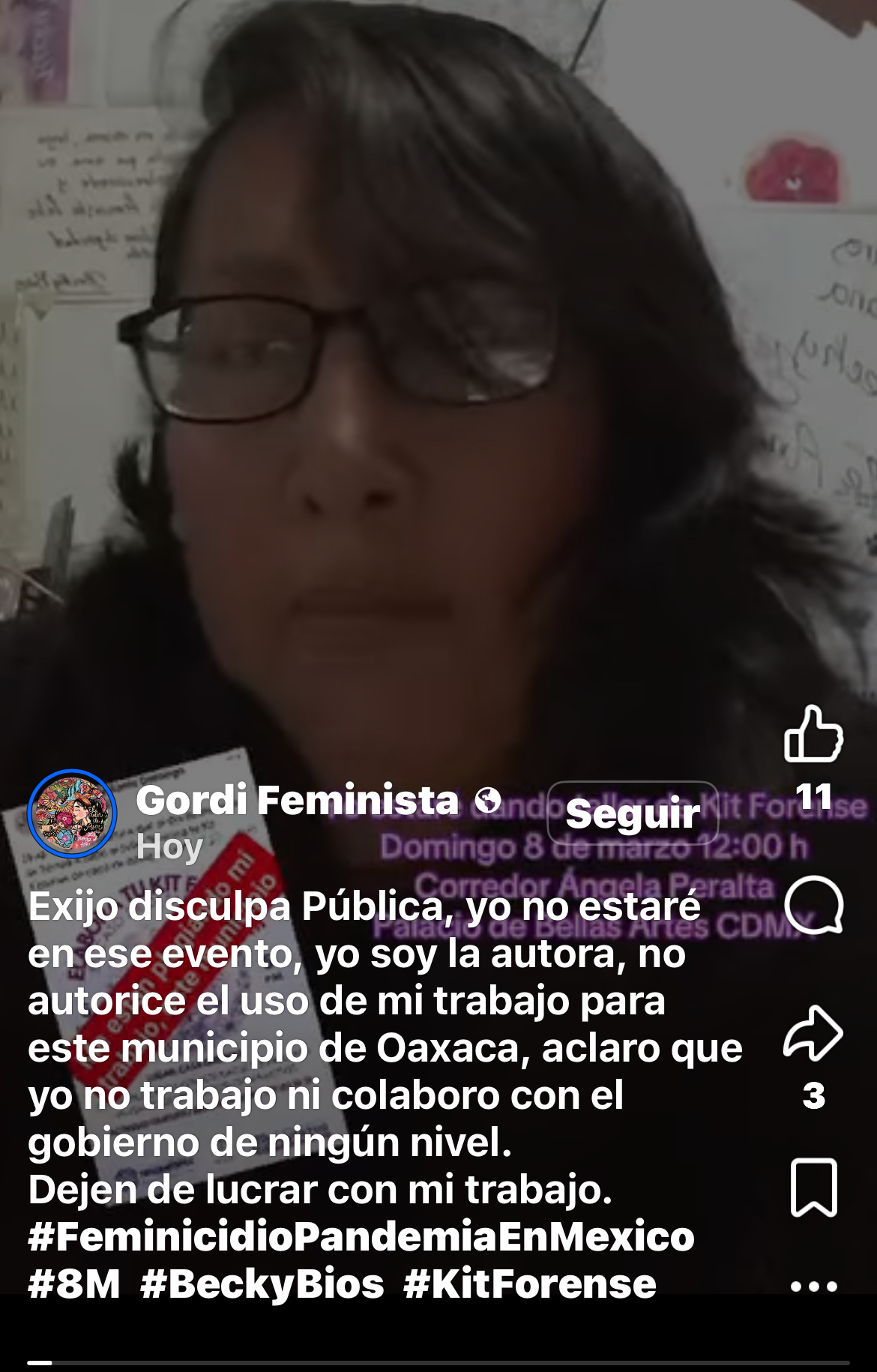 Tras la indignación causada, la publicación fue bajada de las redes sociales del ayuntamiento, sin embargo, la creadora del Kit Forense, Becky Ríos a través de sus redes sociales exigió una disculpa publica acusando de plagio a su trabajo