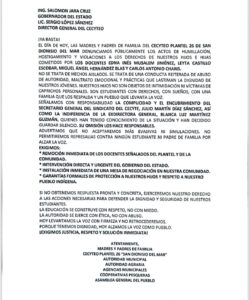 Las madres y padres de familia señalaron que han firmado una serie de documentos ante diversas instancias de gobierno y autoridades de justicia por esta violencia hacia sus hijos, pero hasta el momento no hay solución.