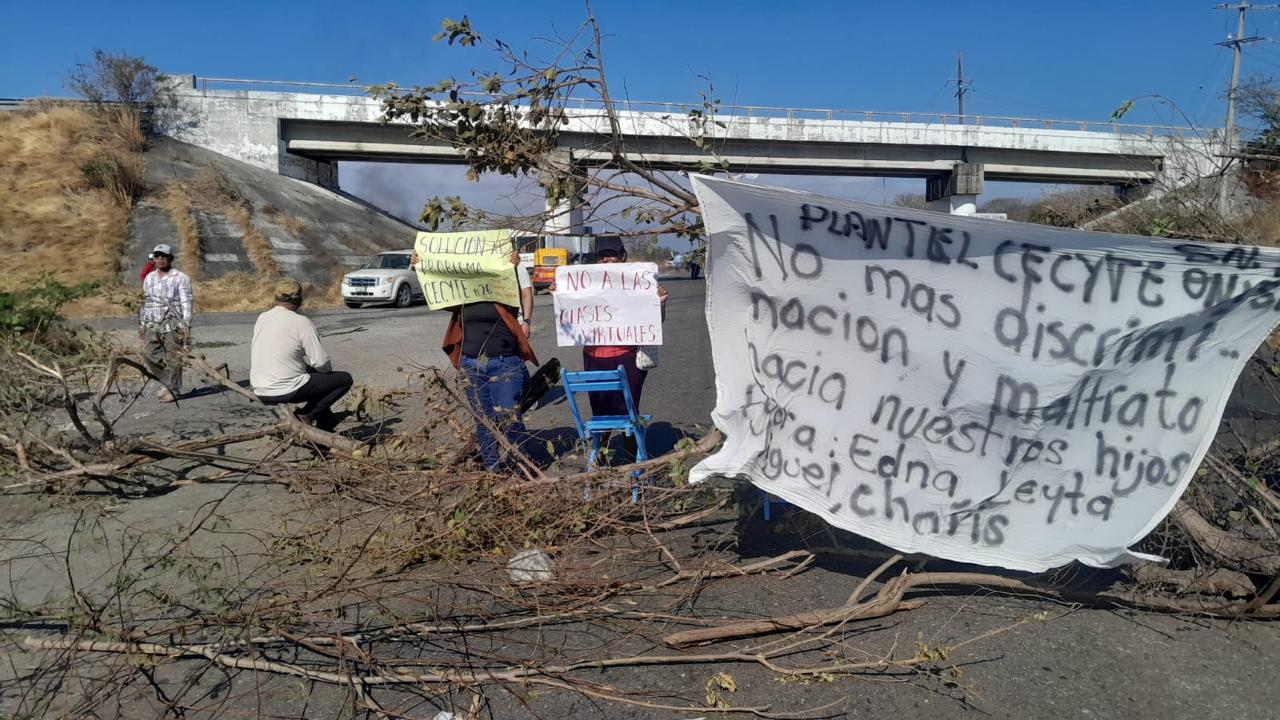 Con bloqueo carretero padres de familia exigen salida de maestros del Cecyte por discriminación y violencia a una veintena de estudiantes