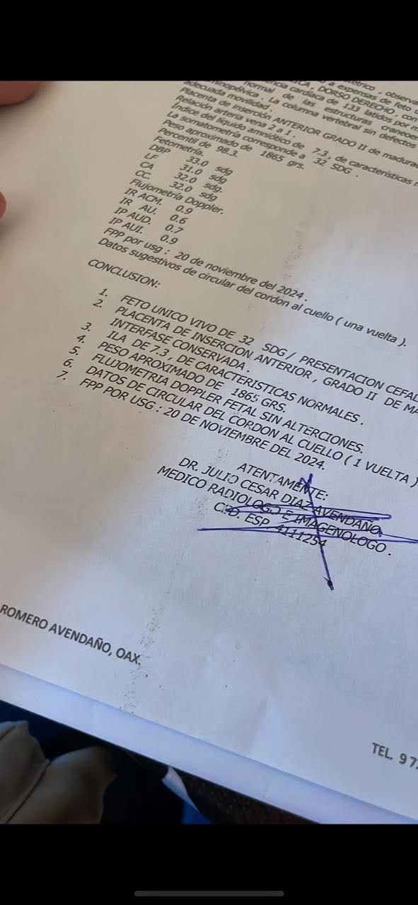Dijo, que el 21 de octubre del 2024 acudió a una consulta médica y supuestamente la atendió una Ginecóloga, pero lo que no sabía era que se trataba de una médica residente de esa área, quién le pidió su ultrasonido porque supuestamente ella ya estaba lista para dar a luz, cuando solo tenía 34 semanas.