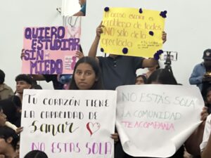 Fue entonces que con el apoyo de su maestra Monserrat Sánchez Moreno , quien le brindó acompañamiento vivieron acoso y violencia. Es decir por no callarse y denunciar las acosaron desde las autoridades educativas, en ese entonces a cargo del rector, Modesto Seara.