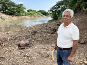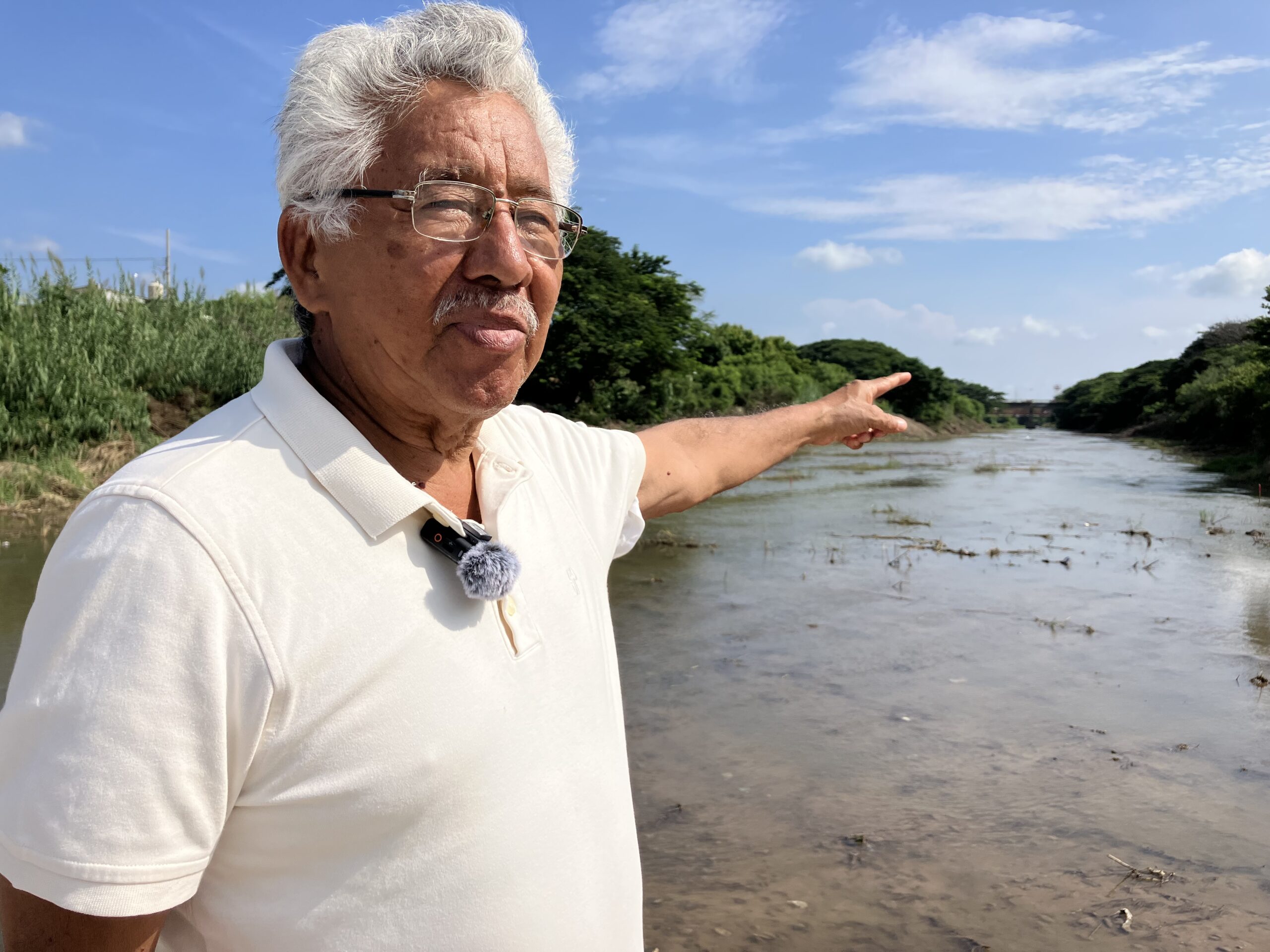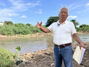“Ni bien limpiábamos y ya venía el agua nuevamente. Entonces pensé que no era nuestro destino seguir así; es cierto, hemos aprendido a convivir con el río, pero con un río que es una amenaza y muy contaminado; por eso comencé por promover la participación comunitaria, a impulsar acciones y realizar trámites con recursos propios para la atención de esta problemática. Claro, hubo de todo, gente que sí nos apoyó, otros que me tachaban de loco y de todo, pero yo seguí, no me detuve, hasta que en el 2018 llegué ante el expresidente Andrés Manuel López Obrador y le platiqué de la situación que vivíamos y le presenté un proyecto para el saneamiento del río; el expresidente me dijo que sí y le encargó al finado David Cervantes de la SEDATU su seguimiento; en junio del 2024 le pedí que nos enviara a la SEMAR para dragar el río y mira, hoy vemos una realidad, un hecho histórico; las maquinarias ya llegaron y ya comenzaron a trabajar en tres frentes, dos de la CONAGUA y uno de la SEMAR».